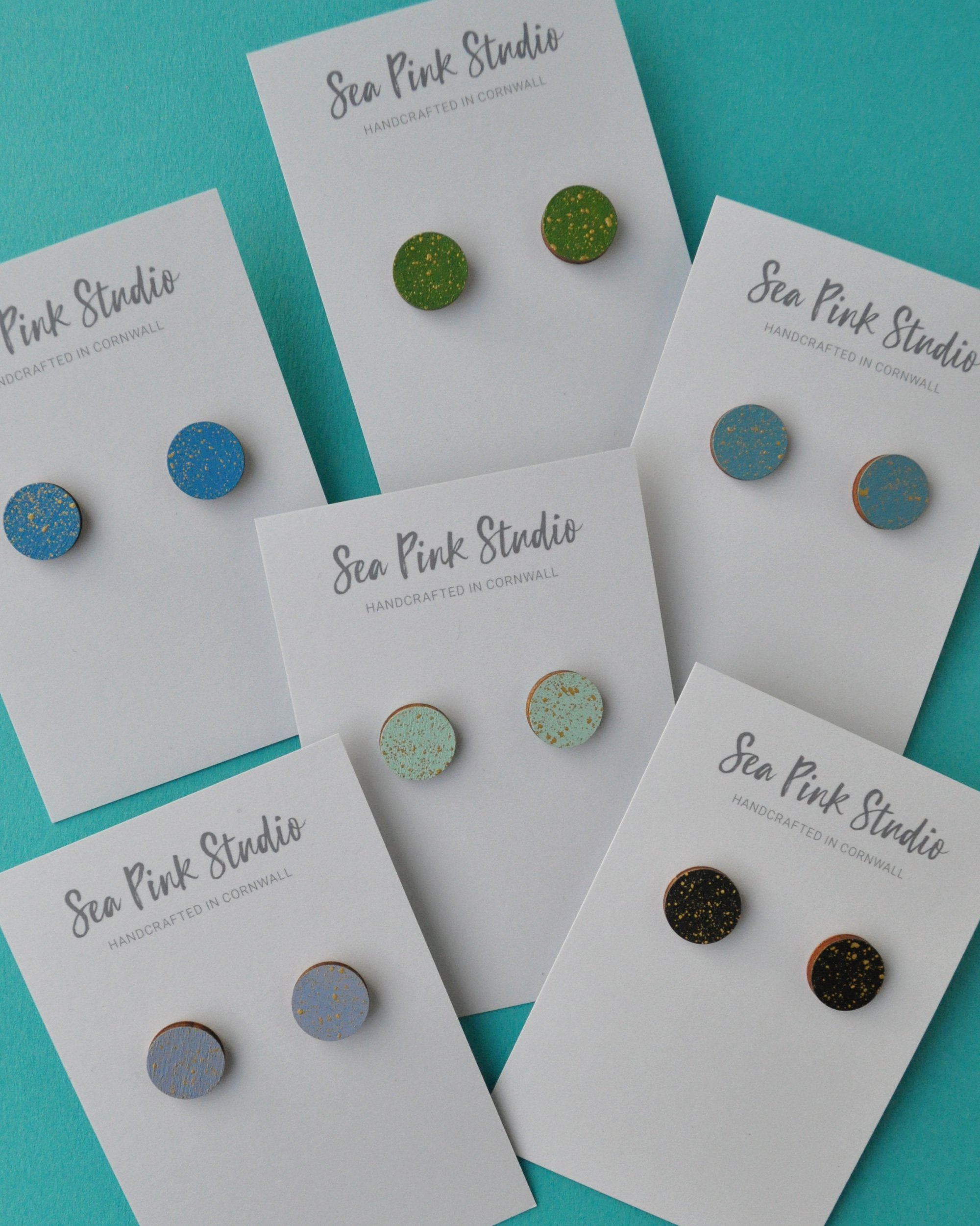 Every wooden piece is handcrafted in my home studio in Devon, carefully hand-painted, and finished with a protective varnish for lasting quality. I have a true passion for colour, and I love experimenting with bold, bright palettes paired with textured brass—creating jewellery that’s both playful and effortlessly elegant. “